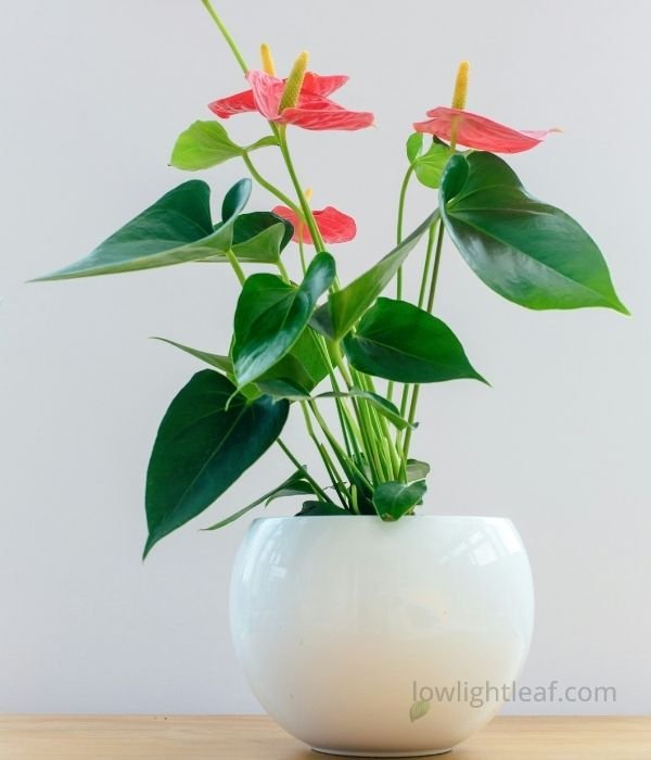 They prefer bright indirect light. Anthuriums require more care than most low light indoor plants, so they are best suited to experienced plant lovers. At 12–18 inches tall and 9–12 inches wide, they add a splash of tropical elegance to your home.