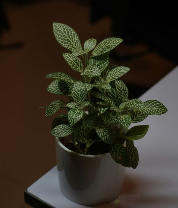 Fittonia albivenis, the Nerve Plant, is a small, slow-growing tropical plant. It has deep-green leaves and striking pink, red, or white veins. It comes from the rainforest floor, so it prefers low light and burns easily in direct sun.