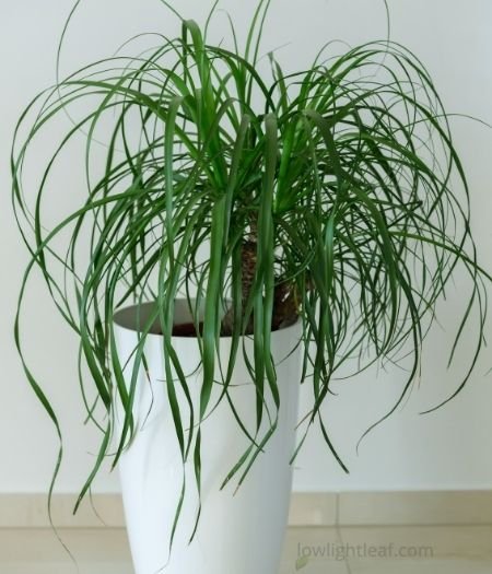 The Ponytail plant (Beaucarnea recurvata) isn’t a true palm but a striking low light indoor plants with a bulbous stem and a tuft of long, strappy green leaves. It thrives best in bright indirect light, though it can tolerate some direct sun. Slow-growing and often kept in shallow pots, this plant rewards patience.